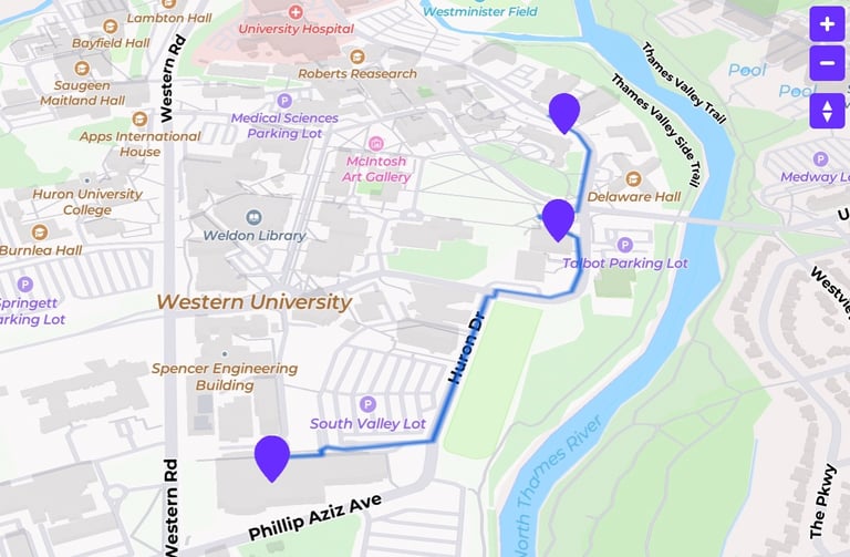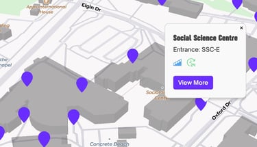 Navigating a university campus isn’t just about distance—it’s about access. Existing tools like Google Maps or static accessibility PDFs don’t support real campus needs: multiple destinations, entrance-level accessibility, or building hours.