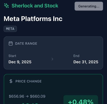 Sherlock & Stock is a Chrome extension that lets users highlight a date range on a Google stock chart and receive explanations of what events or signals drove the price change.