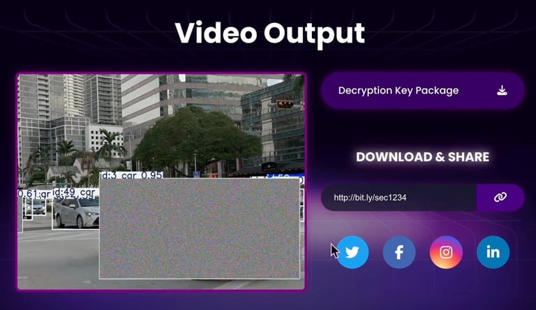 SecureFrame blurs and encrypts sensitive elements in real time using YOLO and AES-256, reducing data breach risk by 40% while maintaining sub-100ms processing speeds.